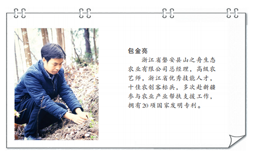 浙江磐安被譽為“中國香菇之鄉(xiāng)”,全縣菌菇行業(yè)從業(yè)人員共有15000多名。1974年出生在磐安縣一個小山村的包金亮就是其中一員。18歲那年,包金亮拿著幾百元啟動資金,學(xué)父親做起了菇農(nóng)。20多年來,包金亮從一名普通的菇農(nóng)轉(zhuǎn)型為種菇行業(yè)的領(lǐng)軍人才,先后斬獲“拔尖人才”“優(yōu)秀科技人才”“省級農(nóng)技骨干”等殊榮,先后獲評國家高級菌類園藝師、食用菌專業(yè)農(nóng)藝師等,還是20項國家發(fā)明專利的擁有者,成了從“苦力型”向“知識型”轉(zhuǎn)變的新型青年農(nóng)民典型。 堅持創(chuàng)新,以科技推動菇業(yè)生產(chǎn) 香菇生產(chǎn)一直是磐安的傳統(tǒng)特色產(chǎn)業(yè)。從當上菇農(nóng)開始,包金亮堅持創(chuàng)新,科學(xué)種菇。為了采集野生菇做試驗,他經(jīng)常翻山越嶺去尋找,有一次一腳踩在一塊飛石上滑下山崖,差點丟了性命。為了解怎樣擺放香菇菌棒,他進入一家菇農(nóng)的菇棚取經(jīng),結(jié)果被誤認為小偷抓進了派出所。偶然從一本雜志上讀到福建培育出一個新品種,他冒著暴雨騎摩托車趕了400公里路,實地取經(jīng)…… 2001年,包金亮創(chuàng)辦磐安首家民營食用菌研究所,隨后創(chuàng)辦磐安縣山之舟生態(tài)農(nóng)業(yè)有限公司,通過有機認證,成為磐安食用菌行業(yè)標準化生產(chǎn)的先驅(qū),實現(xiàn)了低耗、高效、優(yōu)質(zhì)的集約化生產(chǎn)。包金亮精心選育的“新藝一號”香菇新菌株,被韓國、日本及國內(nèi)20多個省市引進栽培。自主研發(fā)的“食用菌集約化栽培工藝與裝置”“便攜式食用菌消毒接種器”“節(jié)能食用菌蒸汽滅菌裝置”等20項發(fā)明先后獲得國家專利。目前,公司年栽培食用菌200萬袋,產(chǎn)值1000余萬元,產(chǎn)品出口韓國、美國、新西蘭等國家。 言傳身教,帶動農(nóng)民增收致富 從2011年開始,包金亮采用“公司+基地+農(nóng)戶”的模式,向農(nóng)戶免費提供菌種、技術(shù)指導(dǎo),至今共接待參觀學(xué)習(xí)98230人次,帶動周邊農(nóng)戶栽培食用菌3100萬袋,產(chǎn)值1.78億元,有效促進了低收入農(nóng)戶的增收致富。一位來自義烏的殘疾人原來從事養(yǎng)雞工作,農(nóng)村環(huán)境綜合整治后沒法從事原來的行業(yè),經(jīng)過包金亮的指導(dǎo),轉(zhuǎn)行種植香菇,目前年種植量已達9萬-10萬袋,產(chǎn)值40余萬元。 除了幫扶周邊農(nóng)民,包金亮還積極參與農(nóng)業(yè)產(chǎn)業(yè)幫扶支援工作,幫助新疆阿克蘇溫宿縣建立食用菌示范基地162畝,開展技術(shù)培訓(xùn)20余場次,培訓(xùn)1000余人次,切實帶動了當?shù)厥秤镁a(chǎn)業(yè)發(fā)展,變輸血扶持為造血幫扶,推動了邊疆地區(qū)農(nóng)民收入不斷提高。 綠色發(fā)展,力促菇業(yè)轉(zhuǎn)型升級 從創(chuàng)辦食用菌研究所開始,包金亮一直倡導(dǎo)食用菌綠色生產(chǎn),承擔國家級星火計劃項目,領(lǐng)辦省級食用菌標準化示范基地,開發(fā)食用菌盆景等,用創(chuàng)新的方式推動食用菌產(chǎn)業(yè)提質(zhì)增效、轉(zhuǎn)型升級。 近年來,結(jié)合磐安旅游產(chǎn)業(yè)發(fā)展,包金亮建設(shè)了占地100余畝的食用菌觀光園,集體驗、科普、觀光、休閑為一體,游客可現(xiàn)場體驗認養(yǎng)、采摘、品賞菌菇的樂趣,促進了食用菌產(chǎn)業(yè)轉(zhuǎn)型升級,為磐安的休閑養(yǎng)生旅游開辟了一條新路。除此之外,包金亮流轉(zhuǎn)林地1000余畝,建設(shè)“林菌生態(tài)循環(huán)標準化示范區(qū)”,帶動發(fā)展林下食用菌栽培,實現(xiàn)了生態(tài)保護和產(chǎn)業(yè)開發(fā)的科學(xué)融合,進一步拓寬了農(nóng)民增收渠道,真正做到了“變綠水青山為金山銀山”。